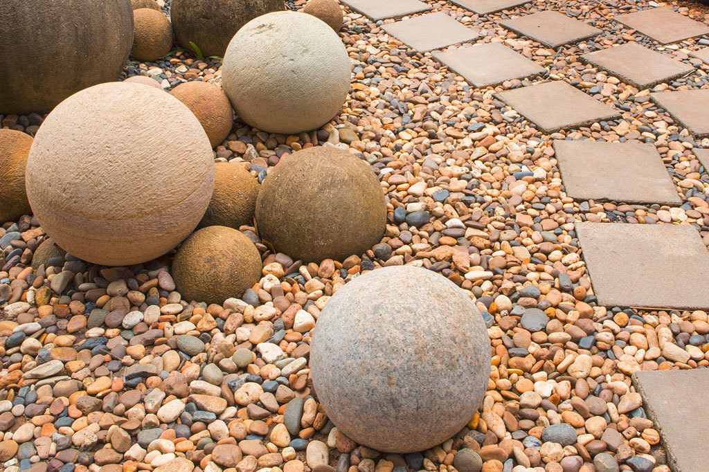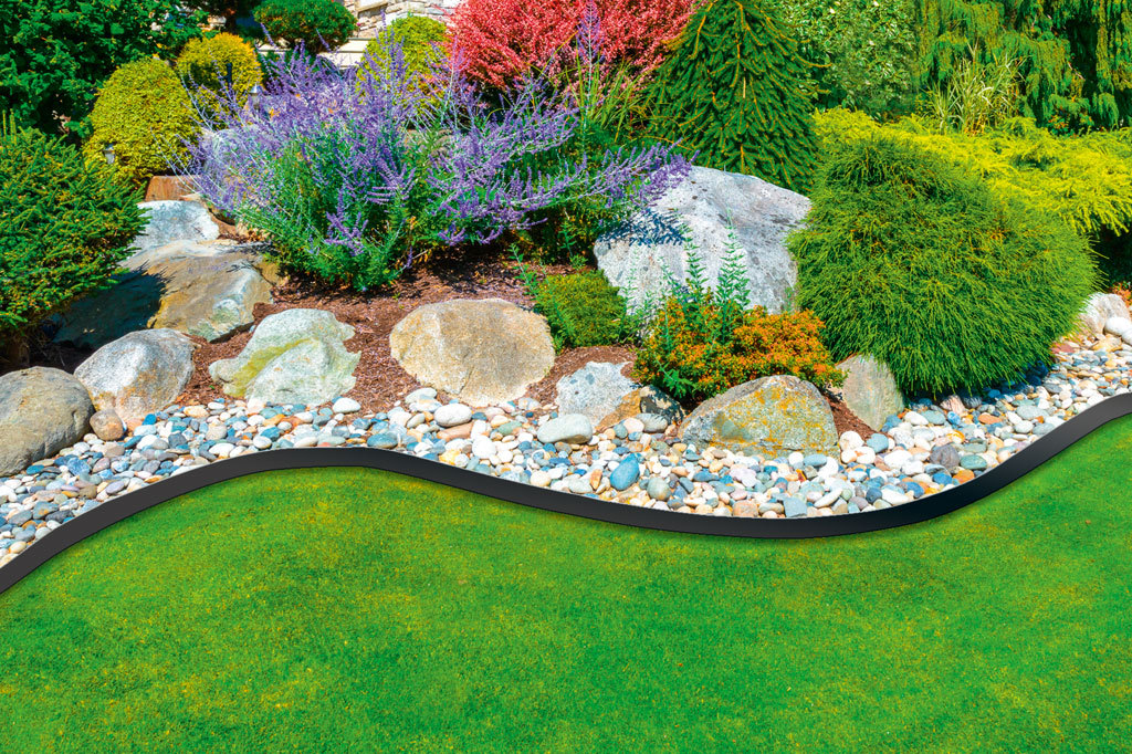 Mulch, Kies oder Schüttgut verlegt und kann auch